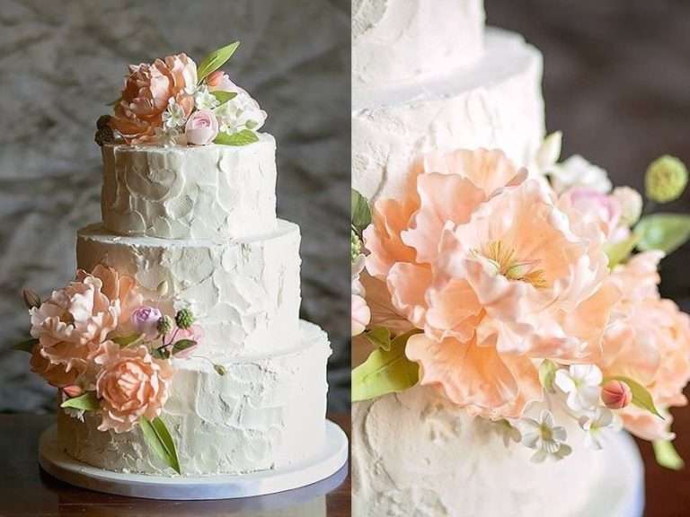 Esta torta, cubierta con buttercream, tiene un acabado rústico con patrones texturizados que le dan un aspecto artesanal. Es perfecta para bodas con un tema vintage o campestre.